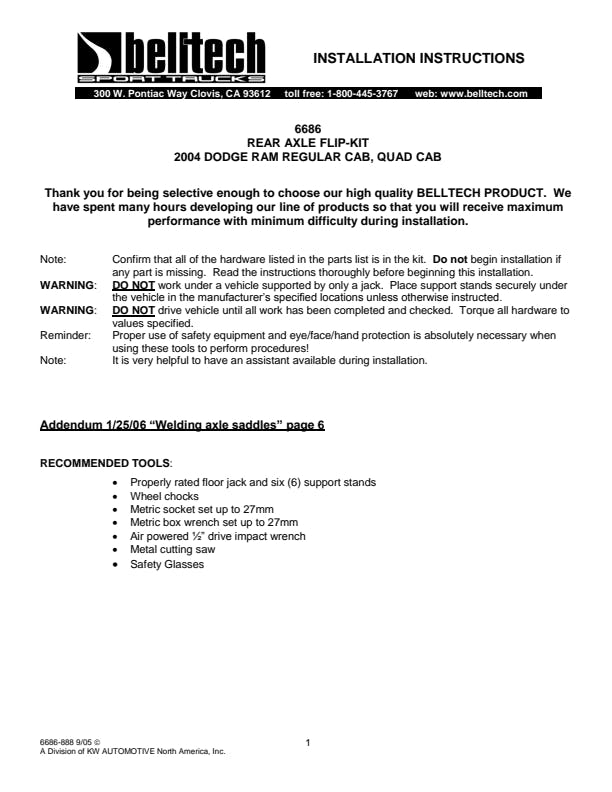 Lower your Sport Truck or SUV right the first time. Belltech complete component lowering kits include all the parts and pieces you need to achieve not only the look you WANT, but the ride quality, performance & safety you NEED. Belltech engineers have reviewed the most popular setups for each Sport Truck or SUV in our application range and developed the Belltech Complete Kit Line to simplify your purchase. These complete lowering kits are your all in one box solution. Made up of a variety of combinations of our individual lowering components as well as all the grade 8 installation hardware and alignment pieces necessary to achieve the advertised lowering amount, choosing your kit has never been simpler.
